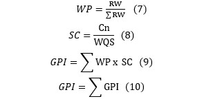 The relative weight (RW) was first assigned, and then the weighted parameter (WP) for each individual parameter was calculated (Table 6). These results were then used to compute the GPI index (Figure 4B).