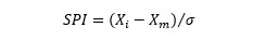 The Standardized Precipitation Index (SPI) (Boukehlifi et al. 2025; McKee et al. 1993) is a widely recognized tool for evaluating and monitoring drought conditions. It is based on a probability distribution function of precipitation, which allows for the identification of drought events and their severity by measuring deviations from the long-term average precipitation. The SPI defined as a normalized variable.